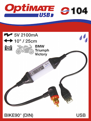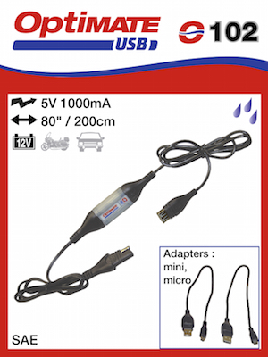 Premium USB charger designed by TecMate. 3 year limited warranty.